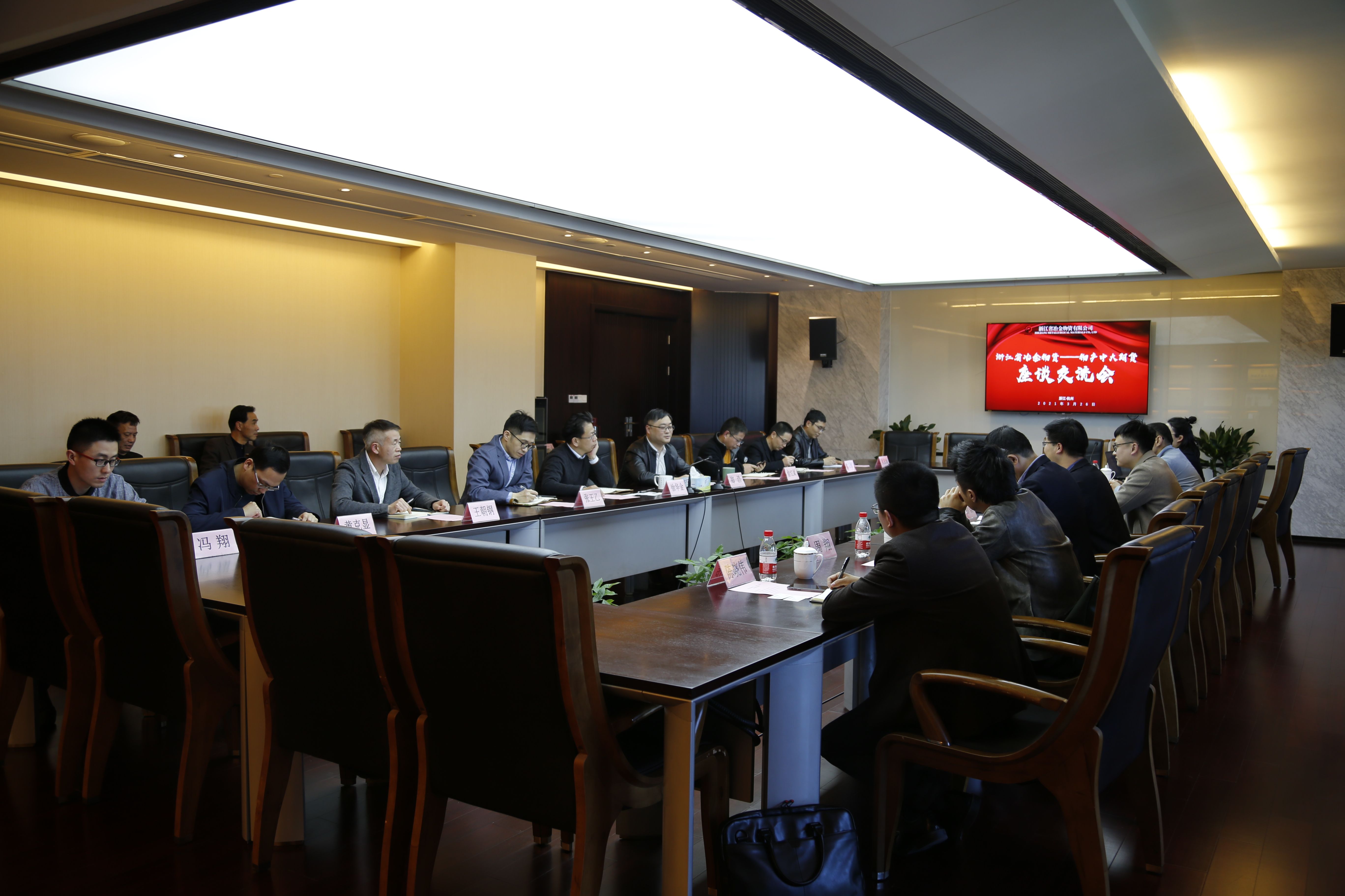 3月26日,物產(chǎn)中大期貨黨委副書記彭磊一行到訪浙江省冶金物資有限公司,雙方就期權(quán)應用以及期貨業(yè)務進行交流座談。冶金物資黨委書記、董事長鄭浩,副總經(jīng)理徐華金出席會議。