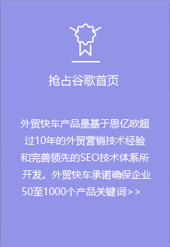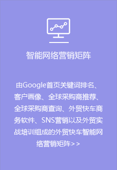 外貿(mào)快車是基于大數(shù)據(jù)和云計(jì)算的智能網(wǎng)絡(luò)營銷系統(tǒng)平臺。依托五大功能系統(tǒng),幫助外貿(mào)企業(yè)智能創(chuàng)建多語種營銷型網(wǎng)站和先進(jìn)的VR展示網(wǎng)站,通過采購商數(shù)據(jù)挖掘,以及SEO、SNS等多渠道網(wǎng)絡(luò)營銷,實(shí)現(xiàn)全球推廣和新興市場開發(fā)。